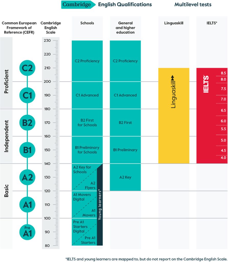As certificações de proficiência em Língua Inglesa de Cambridge estão alinhadas com o Quadro Europeu Comum de Referência para Línguas (CEFR), que é um marco internacional de descrição de competências linguísticas. Ele descreve uma competência linguística numa escala de seis níveis, do A1 (para iniciantes) ao C2 (para quem já domina plenamente uma língua). Isto permite que todos aqueles que estão envolvidos no ensino de línguas e avaliação de competências linguísticas, como professores e alunos, vejam facilmente a que nível corresponde cada certificação.